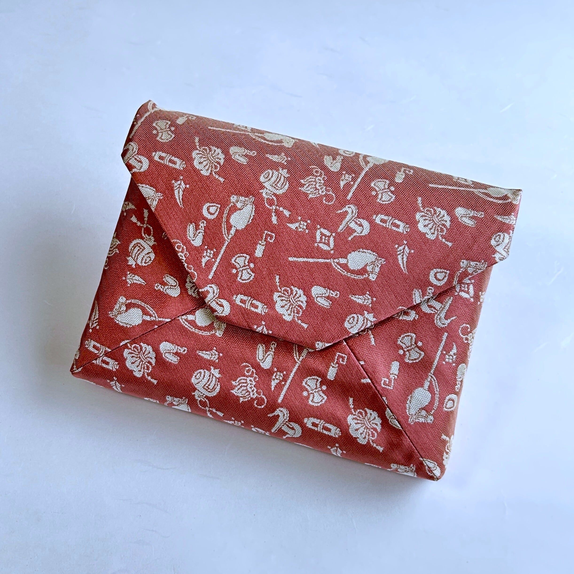 (有香型は、通常の数寄屋袋よりやや高さがあり、四つ折りの出帛紗・お使い帛紗・古帛紗が折れることなく入るサイズです。中にポケットがあります。)