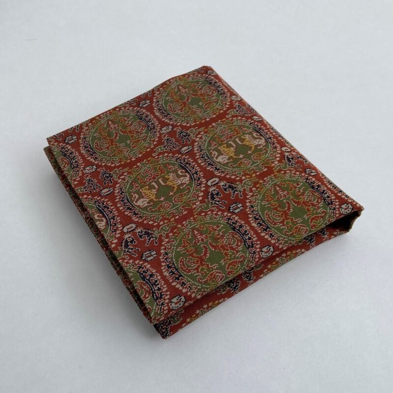 こちらは渋茶色で、色違いで赤茶色もございます。[龍村美術織物より]
