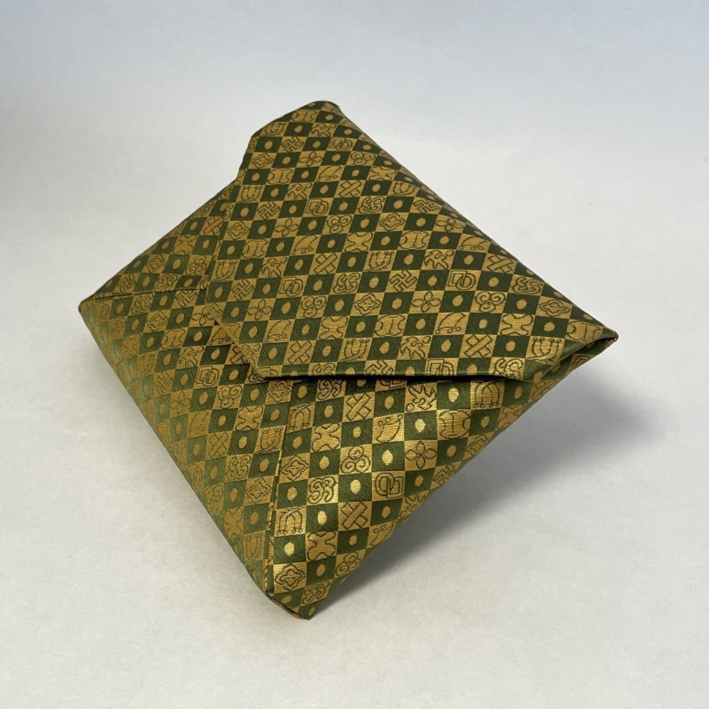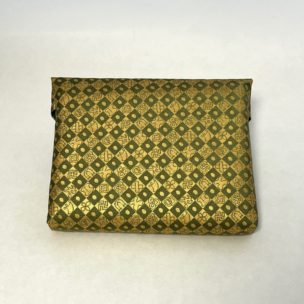 [色:草色に金糸 サイズ:高さ/約16cm 横幅/約21cm 奥行(マチ)/約3㎝]
